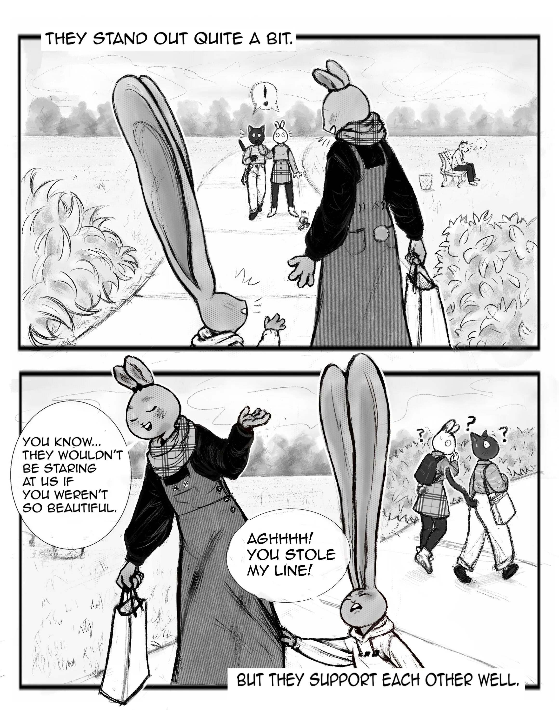 Bunny Sisters (Both 6 ½ ft Tall): Meet the Bunny Sisters! (panels 3-4), 2020, digital