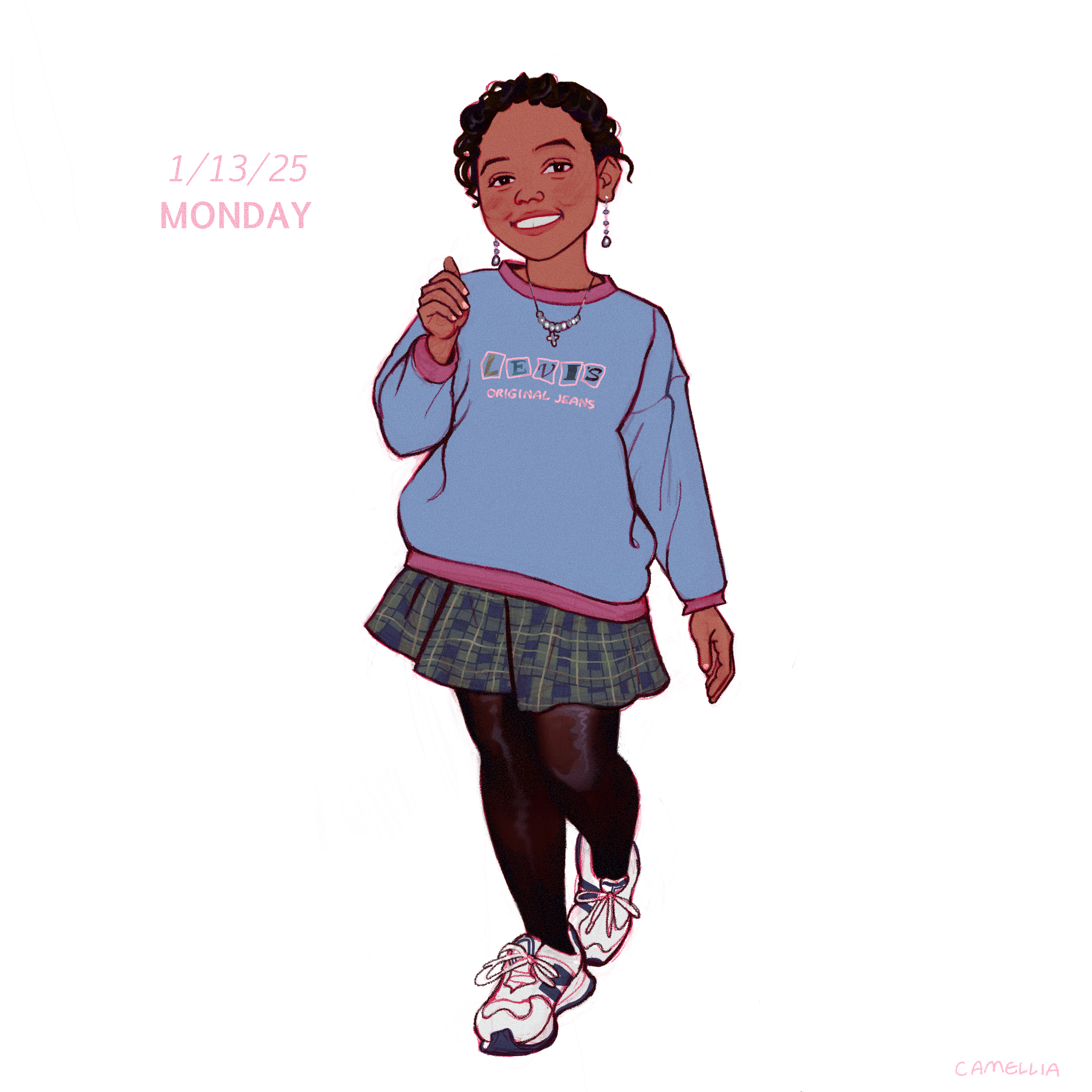 OOTD 1/13/25: 90s Levi’s sweater + plaid skirt, 2025, digital